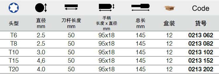 | 1A10463 | 0213062 | 规格:T6x50mm | 把 | 询价 | 7-15天 | |