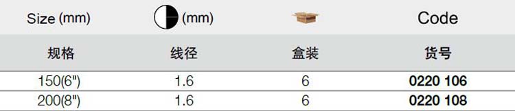 | 1A10478 | 0220106 | 规格:6寸 | 把 | 询价 | 7-15天 | |